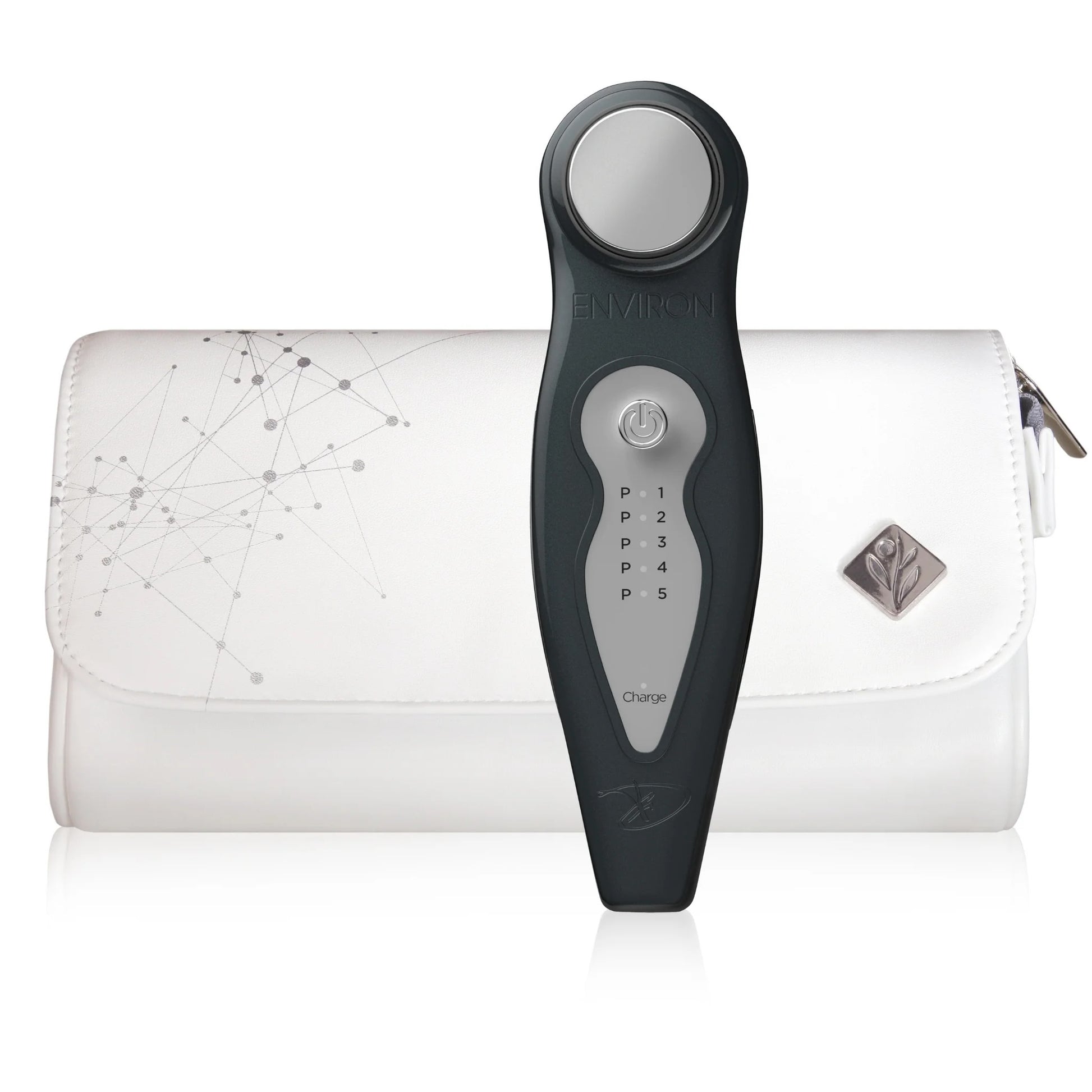 The innovative new Environ DF Mobile is based on the Professional DF machine your esthetician has been using for years to deliver amazing results. It uses low frequency Sonophoresis and Iontophoresis in combination with Environ’s cosmetic products to target specific skin concerns, resulting in the look of a noticeably improved complexion, texture and radiance. Helps to smooth the appearance of frown lines, plump, tone and even out the skin tone for a more radiant looking glow.